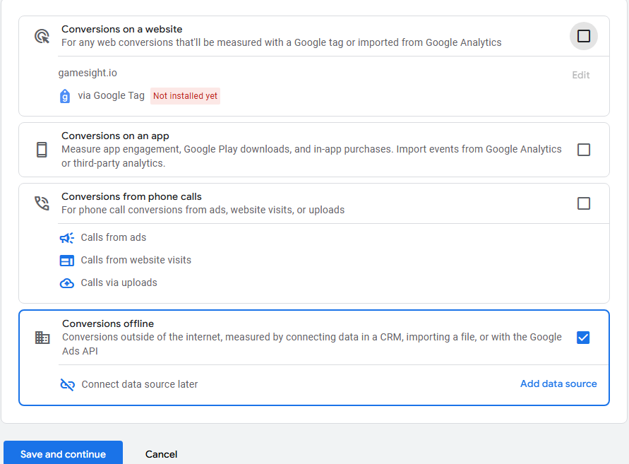 Gamesight requires a specific kind of Conversion Tracker to successfully send conversion data back to Google Ads.