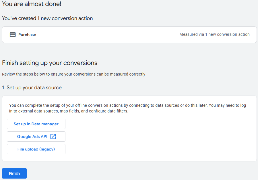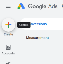 - Click "Create" in your Google Ads dashboard, followed by clicking on "Conversion Action".