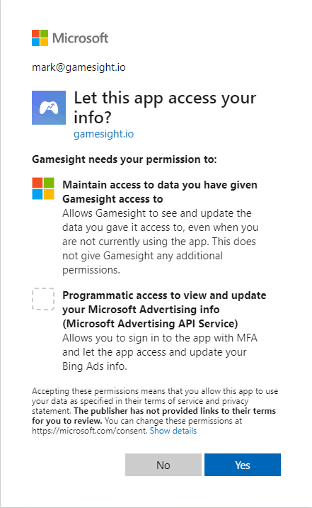 As a Gamesight attribution customer, linking your Microsoft Ads account to your Gamesight Tracker will enable you to: